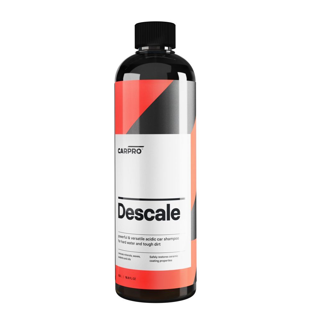 CarPro Descale on pH:ltaan hapan shampoo, joka sopii sekä pinnoitetuille että pinnoittamattomille autoille. Vahoja ja sealanteja Descale kuluttaa merkittävästi, mutta kestopinnoitteet eivät heikkene Descale-pesulla, vaan niiden ominaisuudet palautuvat tehokkaasti, kun kalkkijäämät saadaan pois pinnalta.