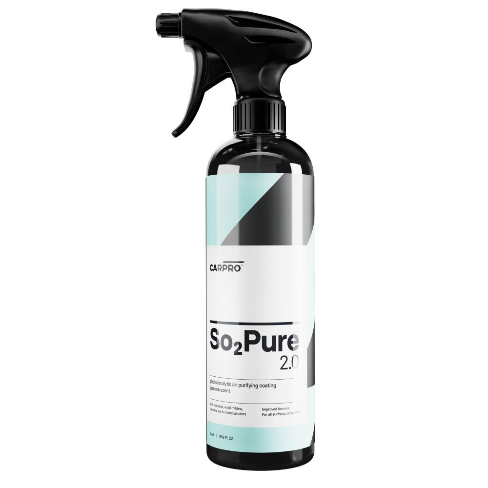 CarPro SO2Pure 2.0 on aktiivisesti hajuja poistava tuote, jonka toiminta perustuu nanokokoisiin titaanidioksidihiukkasiin (TiO2) ja fotokatalyysiin. Valo aktivoi tuotteen ja se muodostaa aktiivista happea, joka tuhoaa käsitellylle pinnalle päätyviä hajuja. Pinnoilla, jotka joutuvat voimakkaamman hankauksen kohteeksi, kannattaa käsittely uusia 6 kk:n välein.