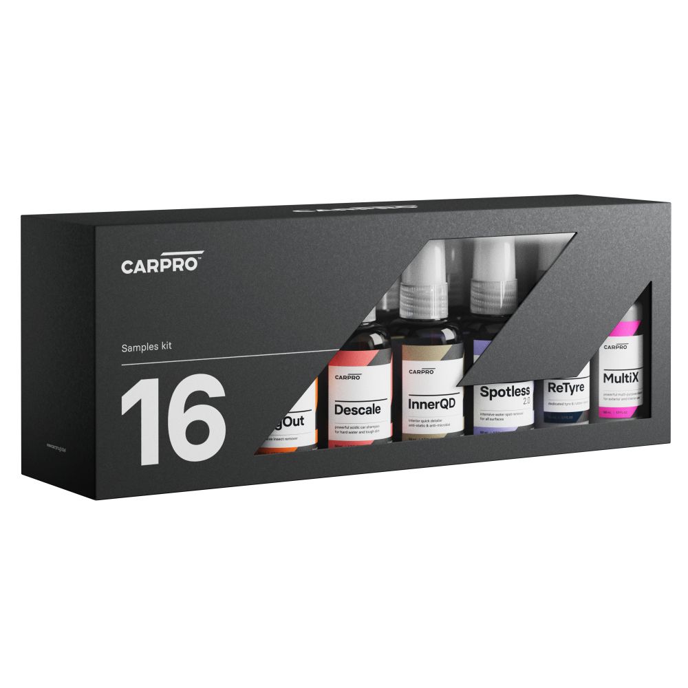 Haluatko testata CarPro-tuotteita, mutta et vielä ole varma siitä, sopivatko ne omaan käyttötarpeeseesi? CarPro The 16 Samples kit tarjoaa mahdollisuuden testata CarPron tuotteita varsin laajalla kattauksella edulliseen hintaan.