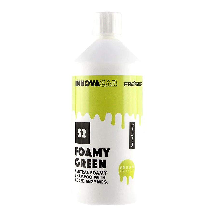 Innovacar S2 Foamy Green on vihreän vaahdon muodostava shampoo. Sen väriefekti pääsee parhaiten esille, kun shampoo levitetään painepesuriin liitettävällä vaahdottimella. Värin voimakkuus riippuu käytettävästä laimennuksesta. S2 Foamy Greenissä on raikas havuntuoksu.