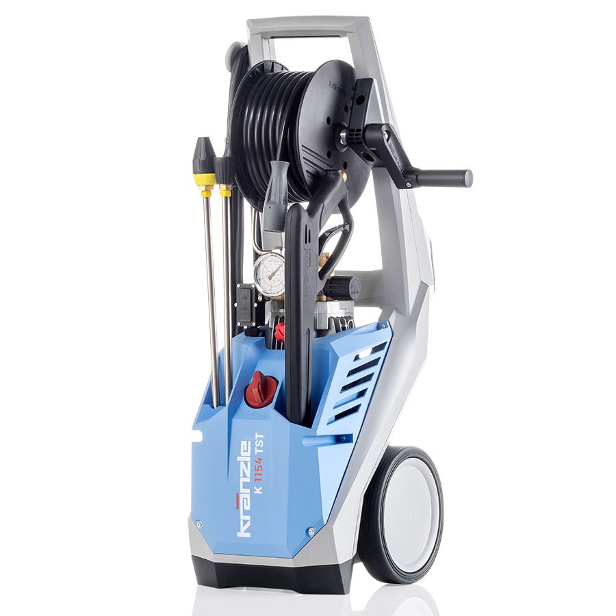 Kränzle 1154 TST on suositun 1152:n seuraaja ja korvaa aiemman mallin. Tämä pesuri on oikea valinta silloin, kun tarvitset helposti pyörillään siirrettävän ja letkukelalla varustetun painepesurin. Mukana toimitetaan kiinteän viuhkasuuttimen lisäksi tehosuutin (pyörivä pistesuutin).