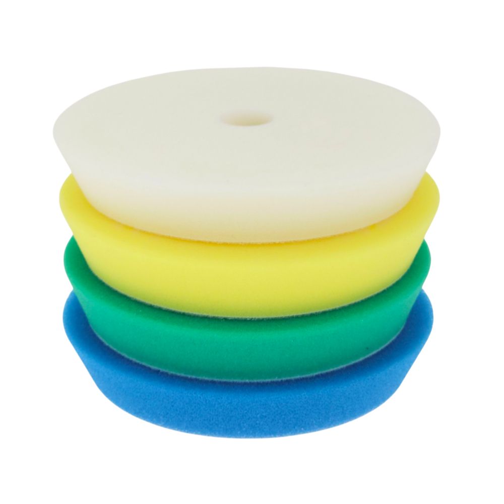 Monipakkaus keskireiällisiä Rupes-vaahtomuovilaikkoja 150 mm:n tallaan
